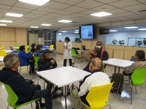 年度異地避難演練帶長輩實際演練災難逃生外也聆聽了關渡醫院安排的ACP宣導講座