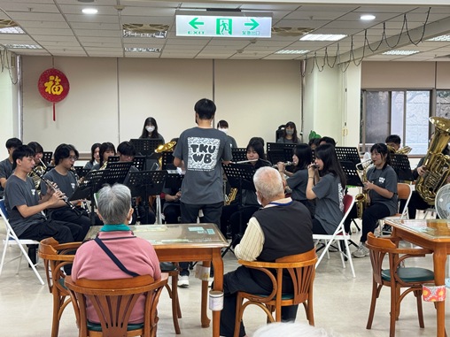 淡江大學管樂社的同學們帶來氣勢磅礡的管樂演奏讓長輩們沈浸在音樂饗宴中